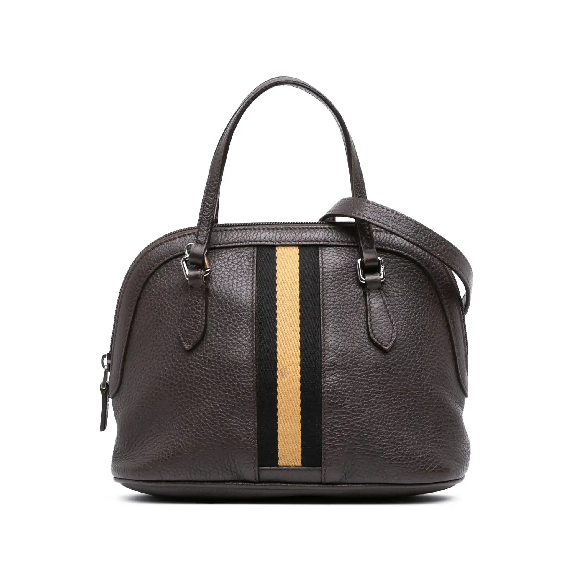 Description | This satchel features a leather body with web details, flat leather handles, a detachable flat leather strap, a top zip closure, and an interior slip pocket. | ||||||||||||