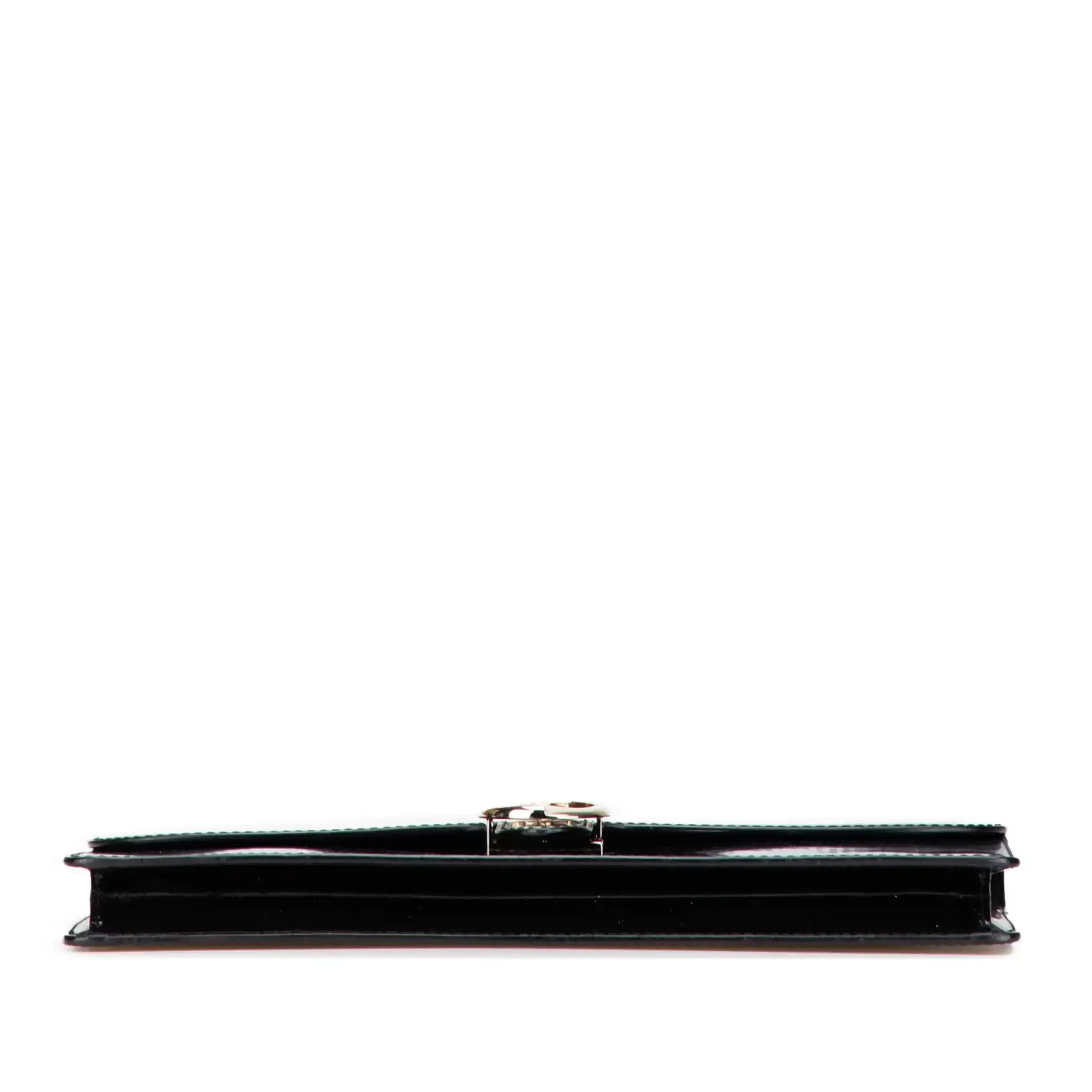 Description | This clutch bag features a patent leather body, a front flap with magnetic closure, and an interior zip and slip pockets. | ||||||||||||