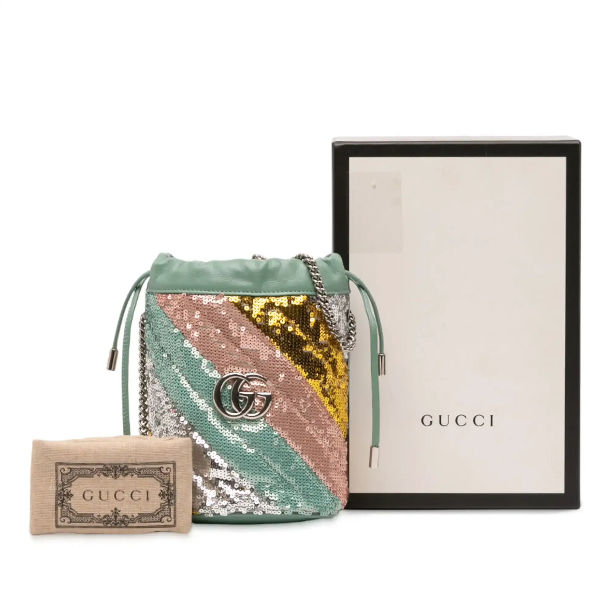 Gucci Small GG Marmont Sequined Diagonal Matelasse Leather Bucket Bag