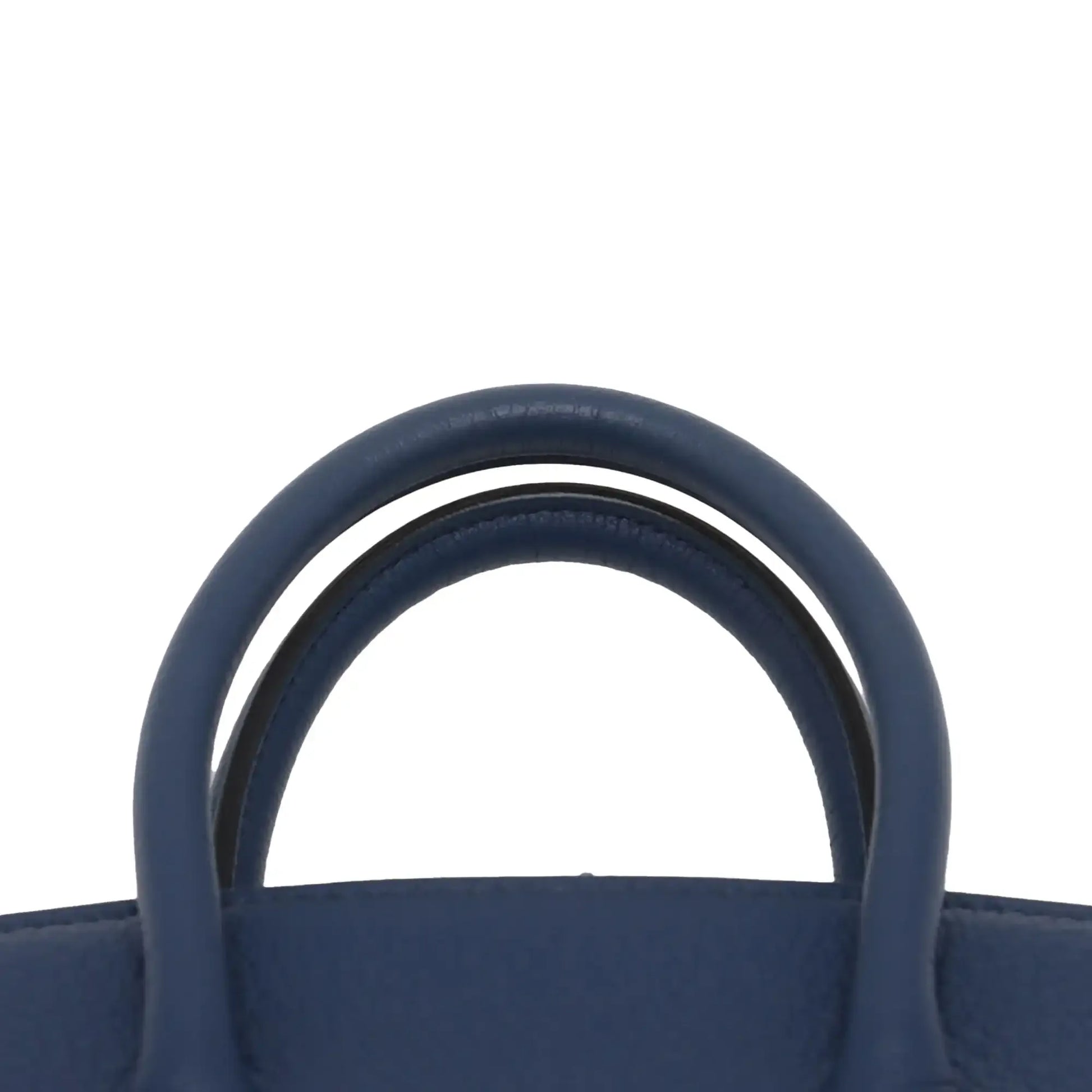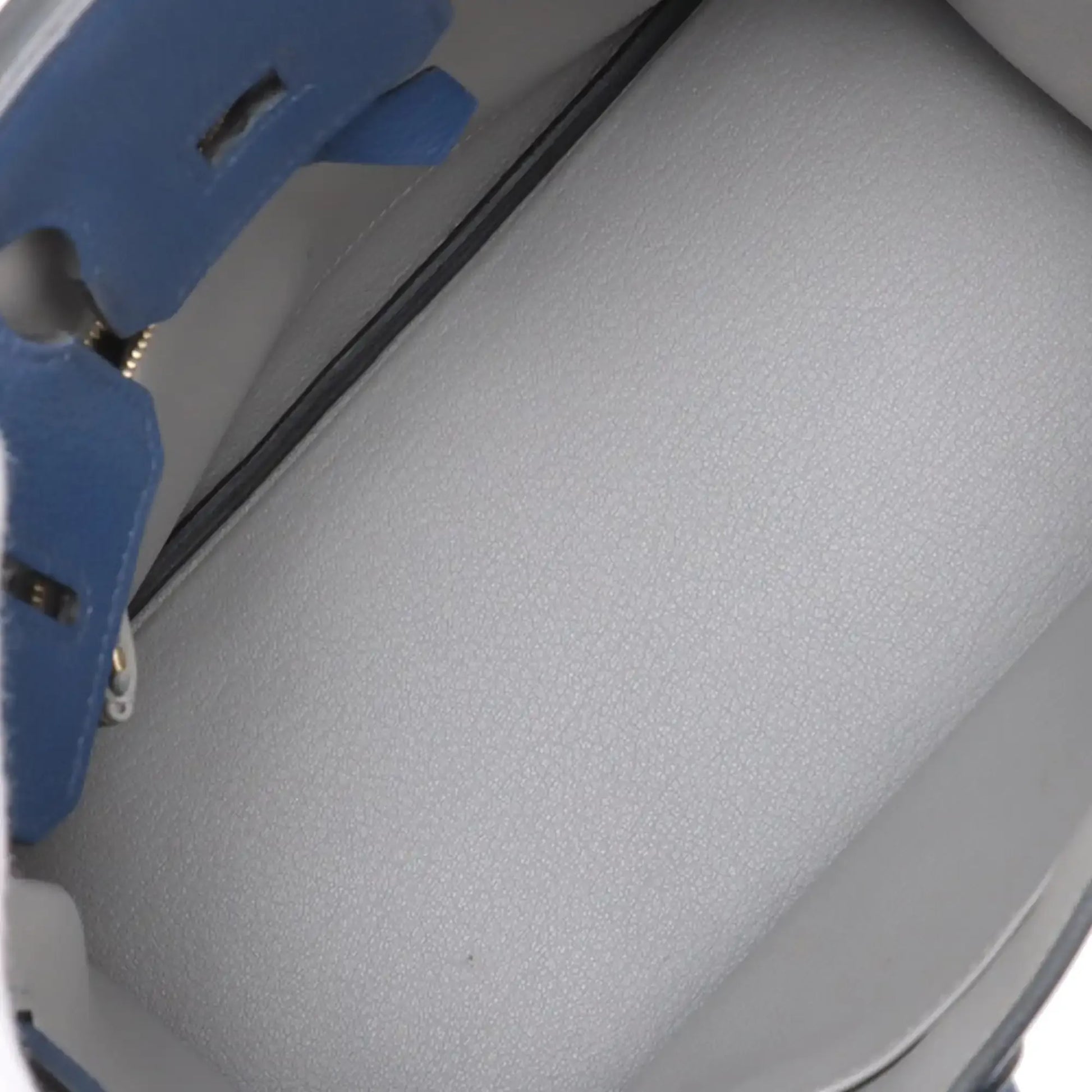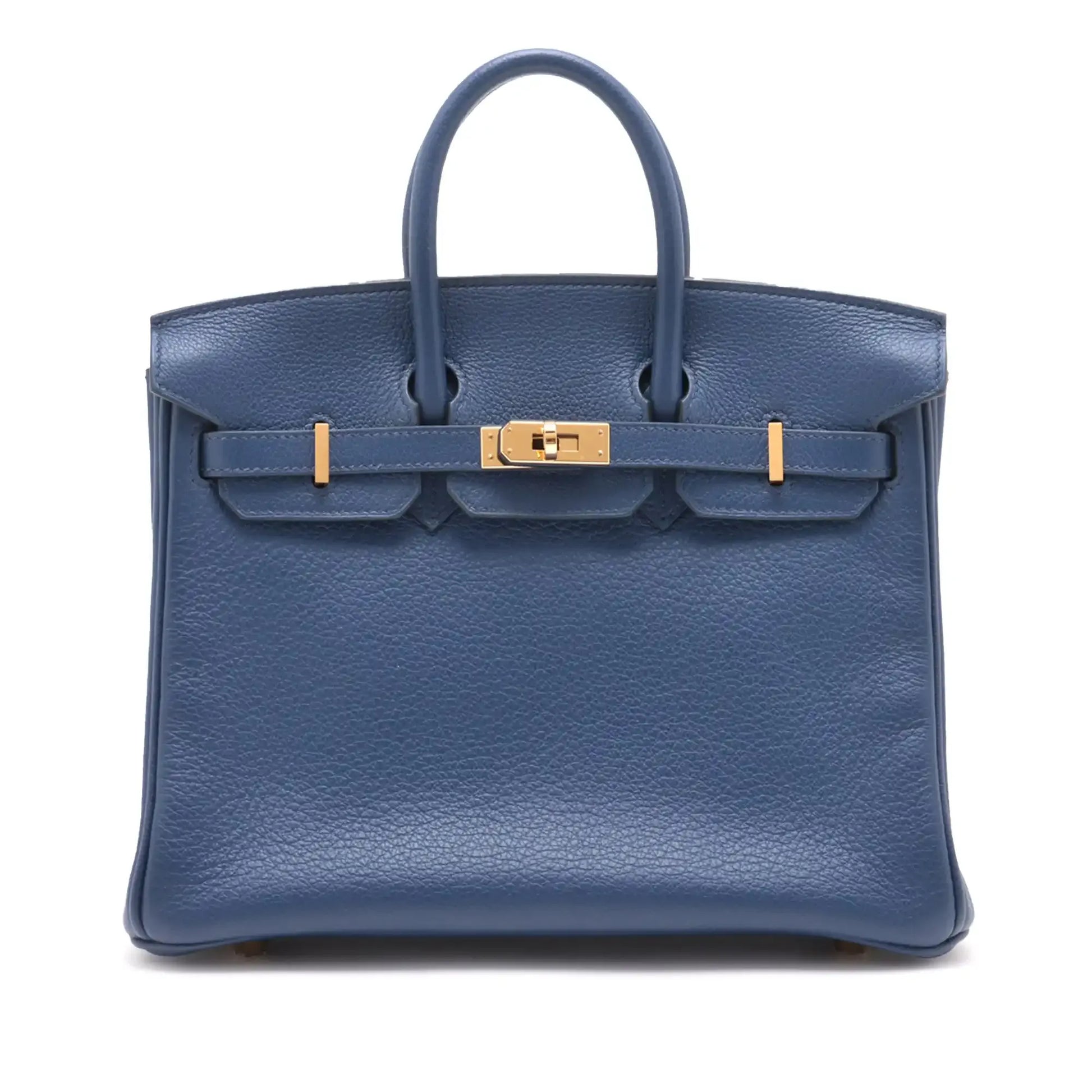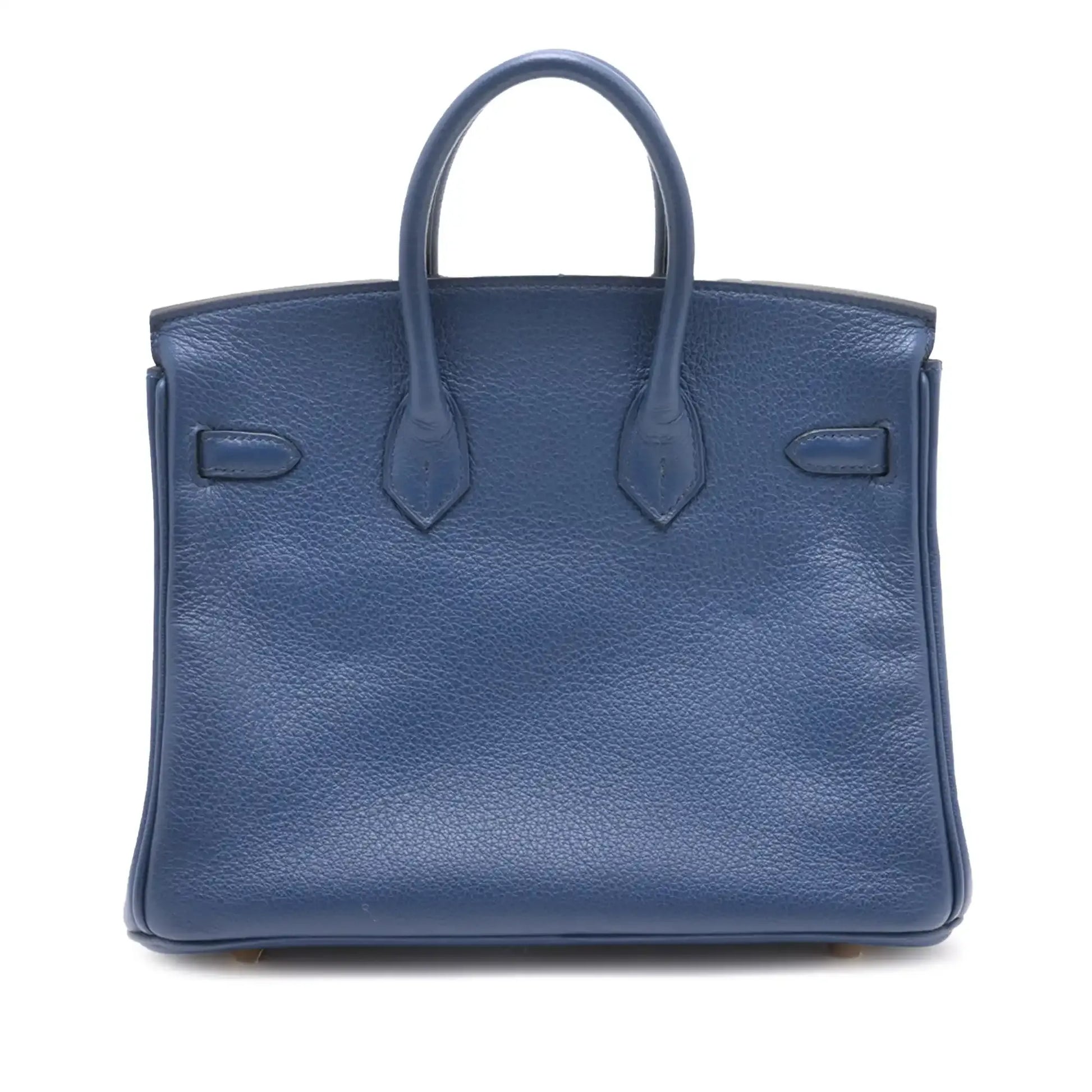 | Description | The Birkin 25 features a Clemence leather body in Bleu Sapphire and Gris Mouette color, rolled leather handles, a front flap with a metal lock closure, and interior zip and slip pockets. | ||||||||||||