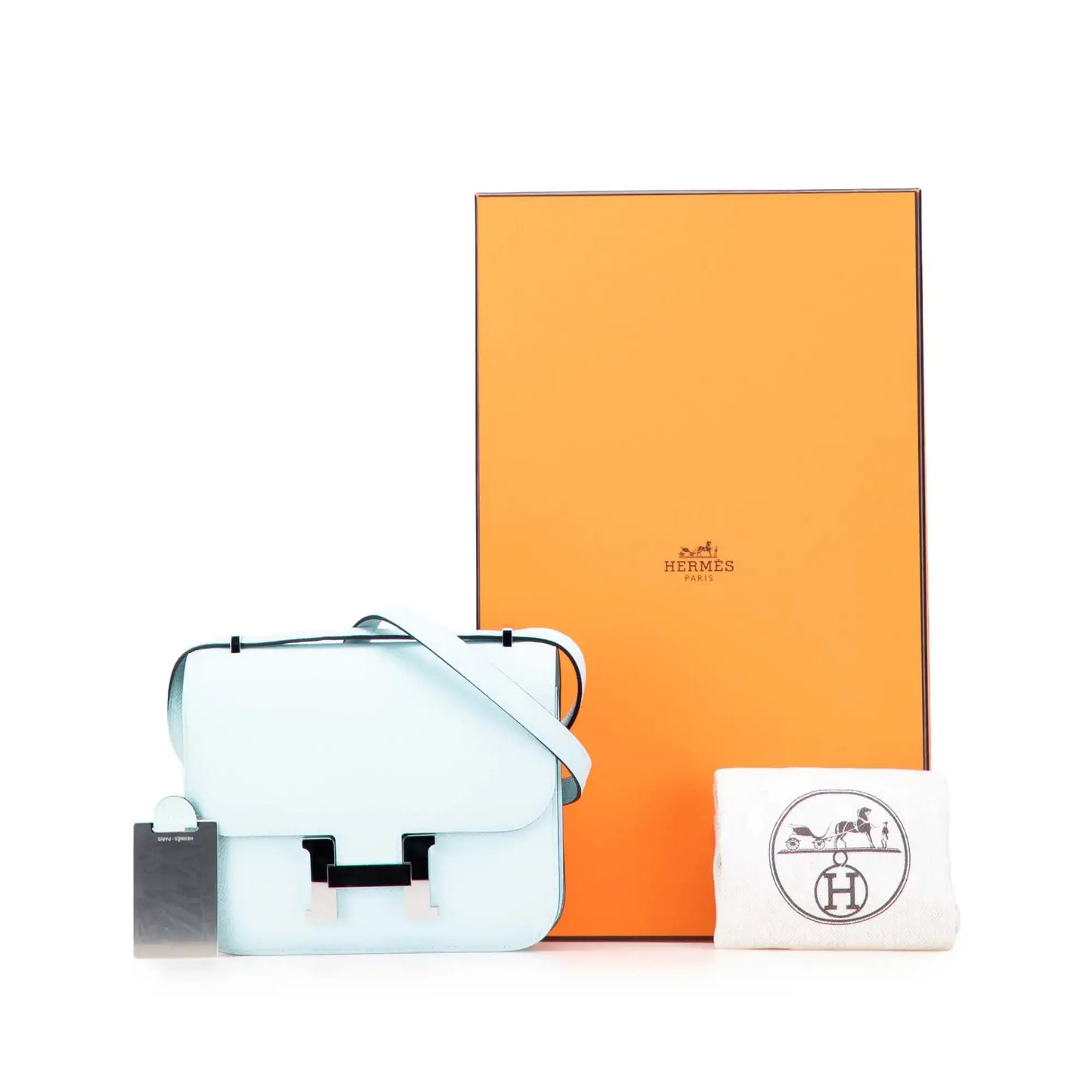 Description | The Mini Constance features an Epsom leather body in Blue Brume color, an adjustable flat leather shoulder strap, a front flap with clasp closure, and interior slip pockets. | ||||||||||||
