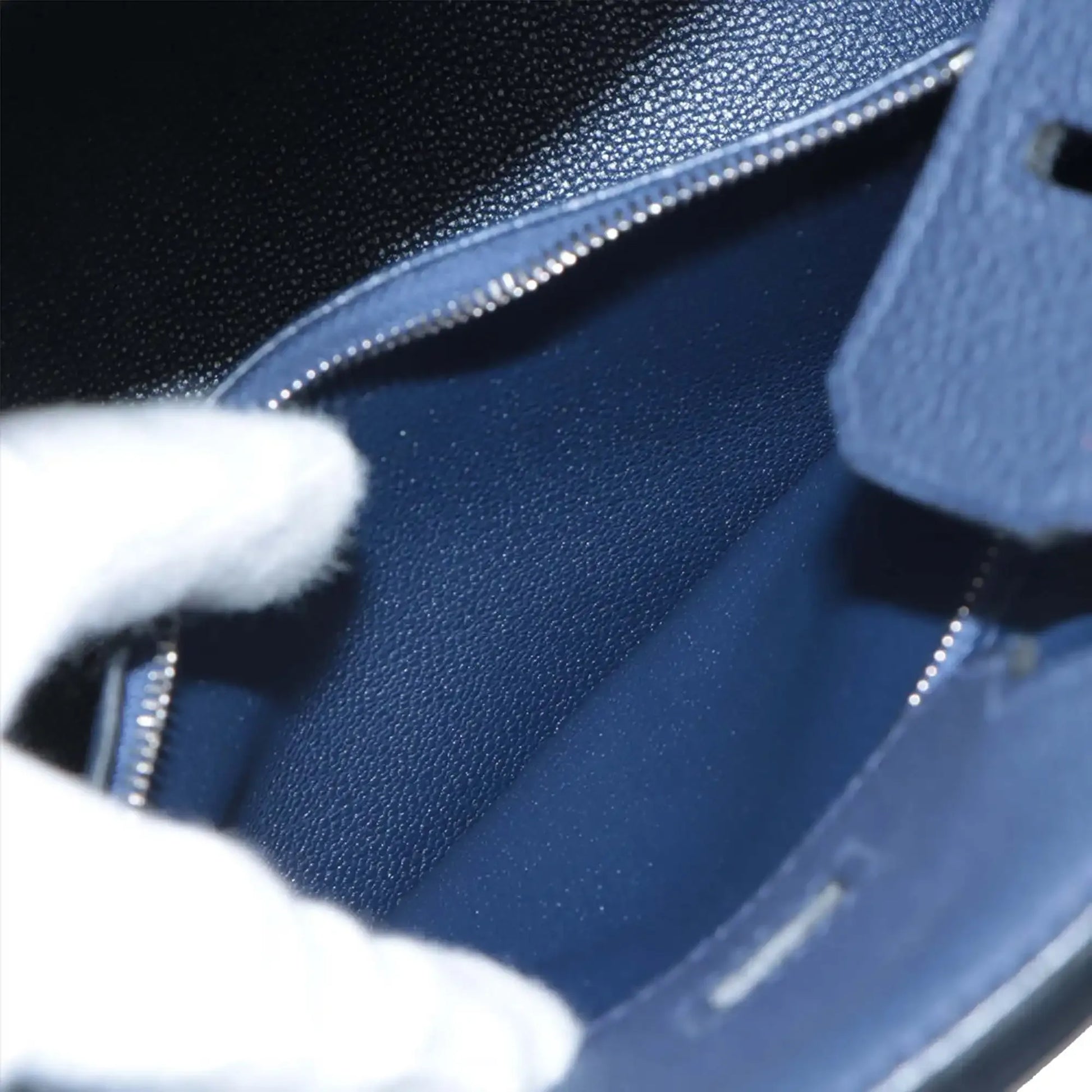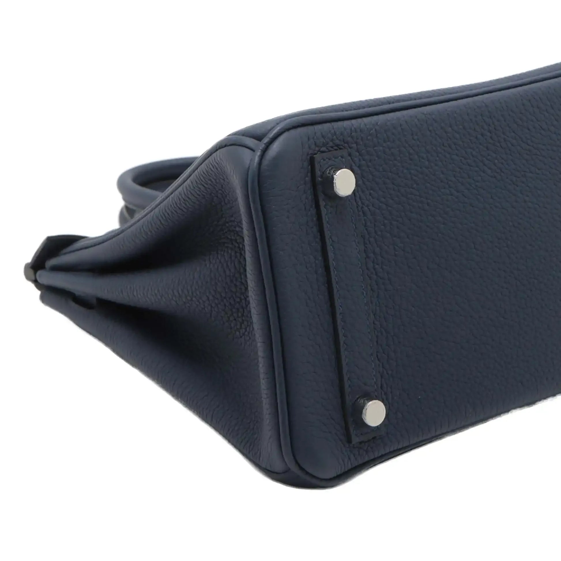 | Description | The Birkin 25 features a Togo leather body in Blue Encre color, rolled leather top handles, a front flap with turn-lock closure, and interior slip and zip pockets. | ||||||||||||