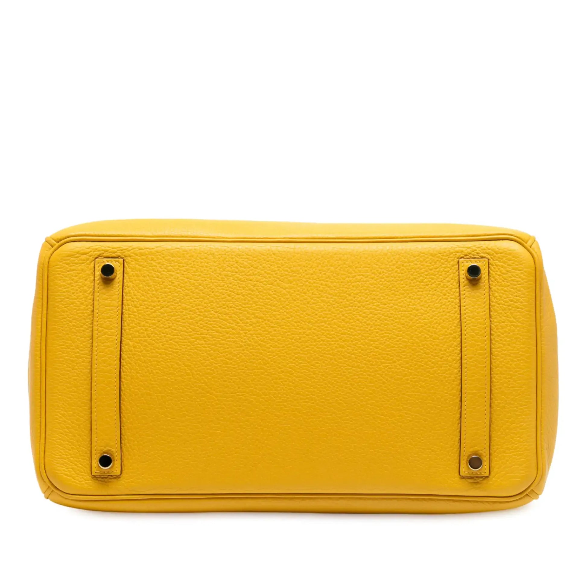 | Description | This Birkin 35 features a Togo leather body in Soleil color, rolled leather handles, a front flap with a strap and turn lock closure, and interior zip and slip pockets. | ||||||||||||