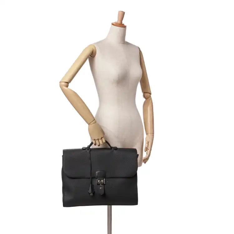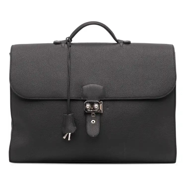 Description | The Sac a Depeches 38 features a togo leather body, a flat leather top handle, a front flap with flip-lock closure, an exterior back slip pocket, interior open compartments, and interior slip pockets. | ||||||||||||
