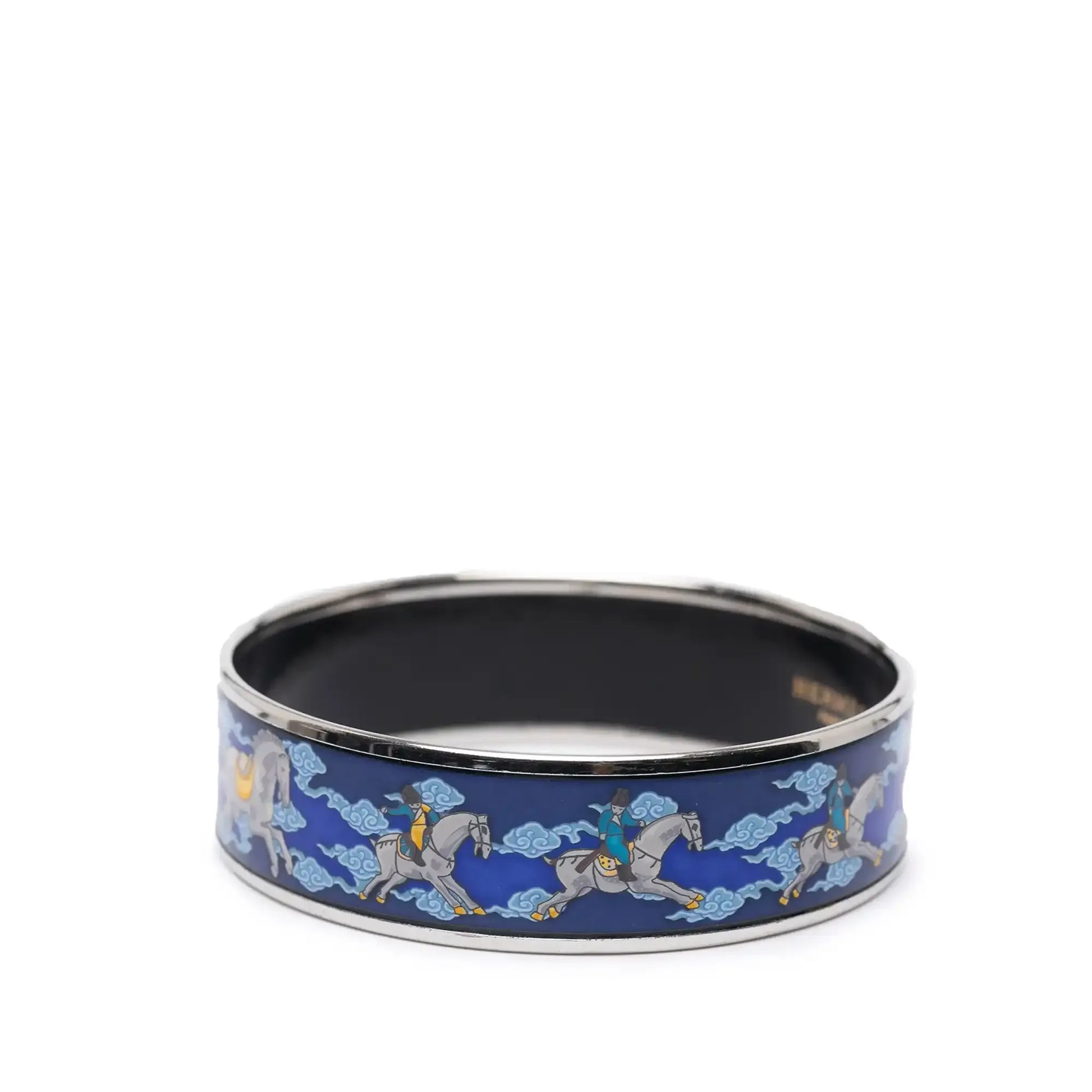 Hermès Wide Enamel Horse Riding Motif Bangle