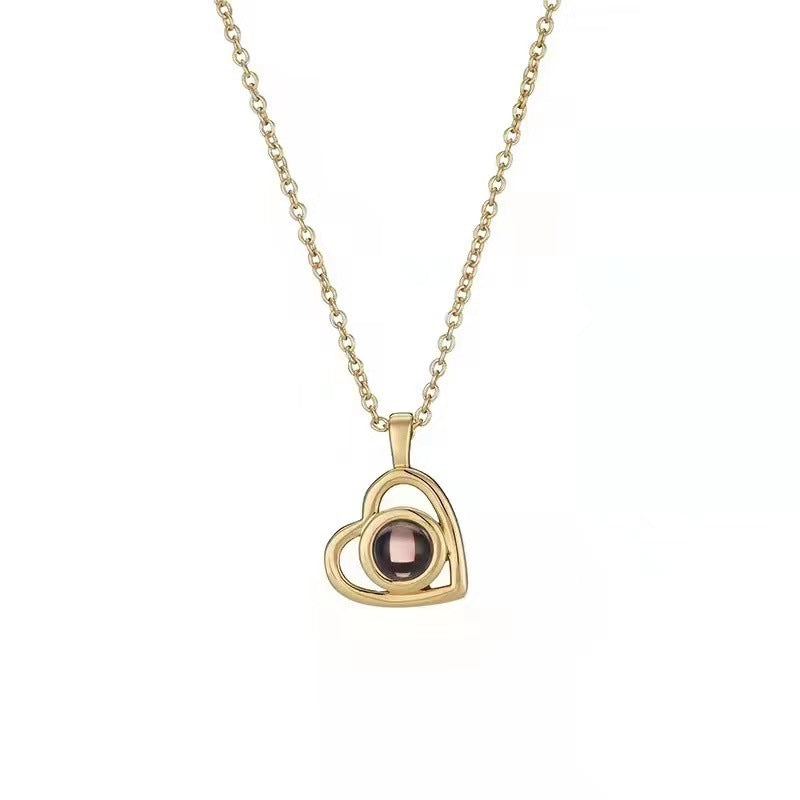 Light luxury and noble hollow heart projection necklace