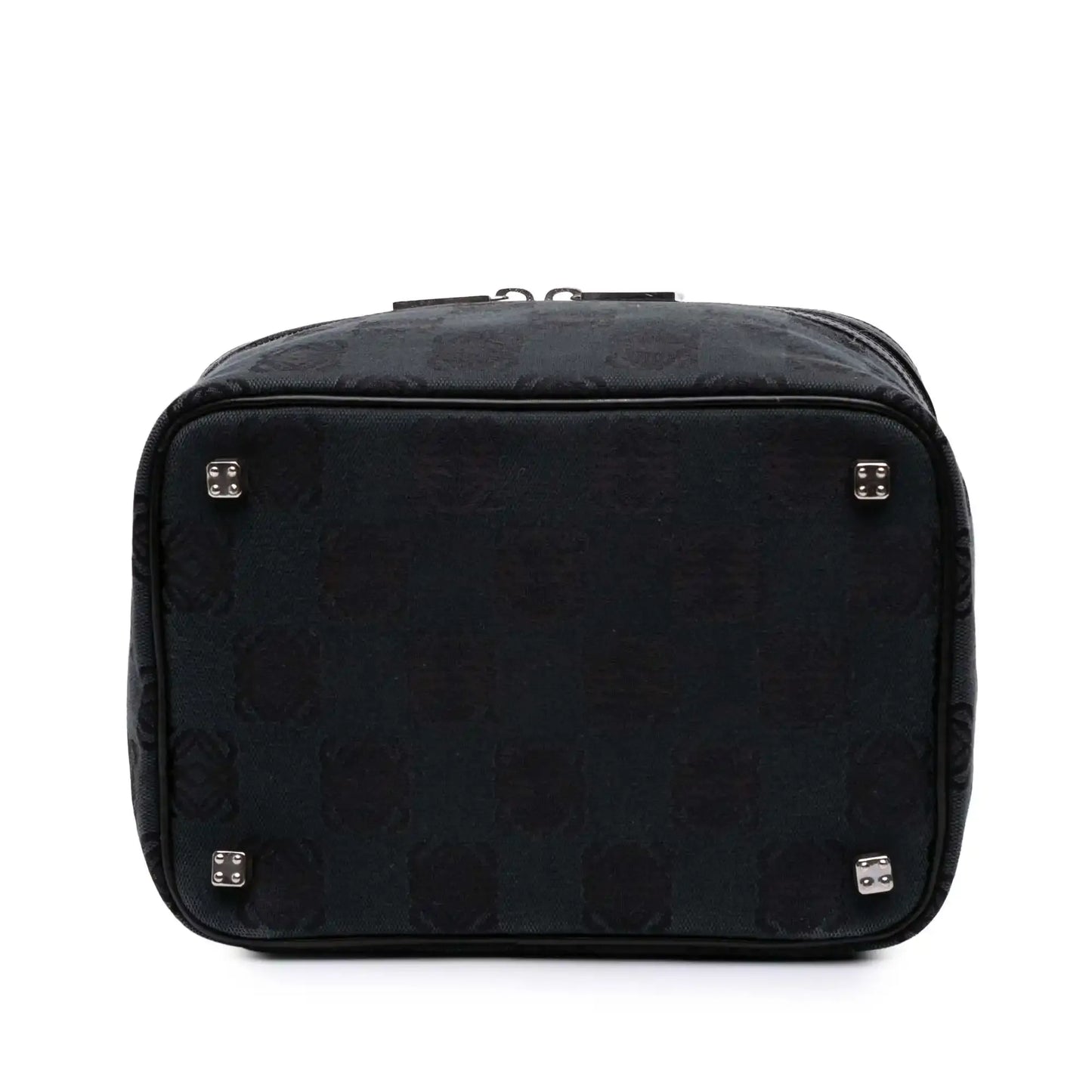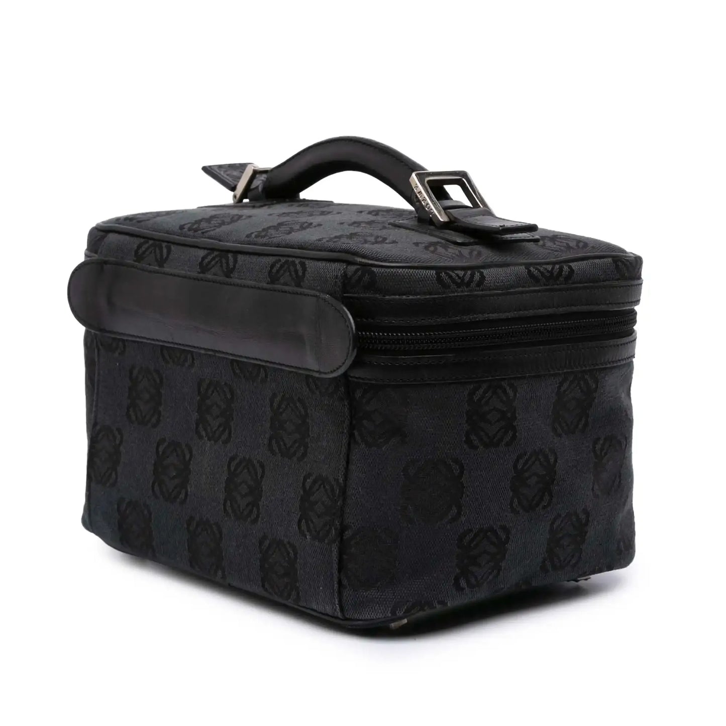 Description | This vanity bag features a canvas body with leather trim, a flat leather top handle, and a top zip around closure. | ||||||||||||