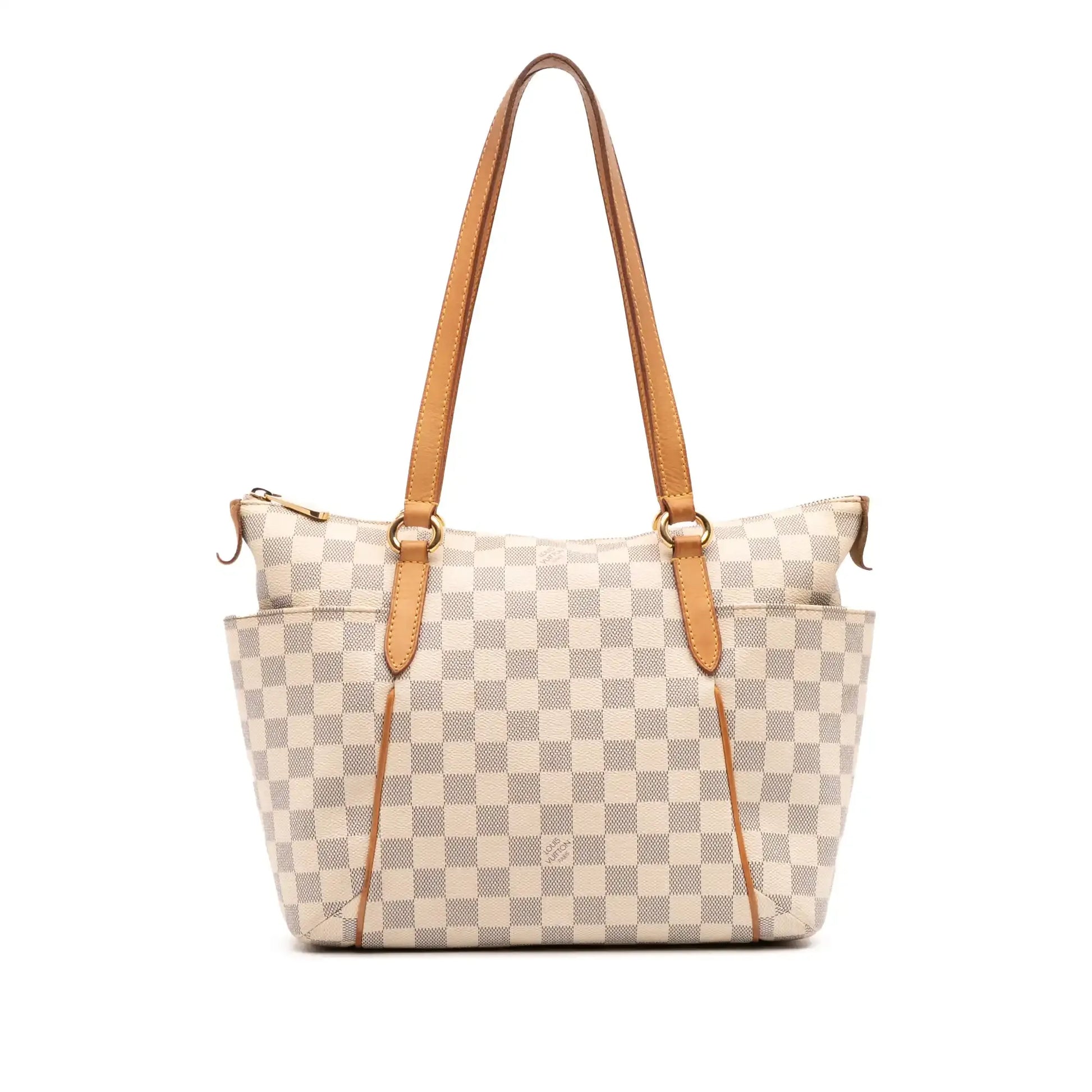 Description | The Totally PM features a damier azur canvas body with vachetta leather trim, flat vachetta leather handles, a top zip closure, exterior side slip pockets, and an interior slip pocket. | ||||||||||||