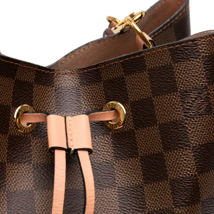 Description | The Neonoe features a damier ebene canvas body, an adjustable flat leather strap, a top drawstring closure, and an interior zip pocket. | ||||||||||||