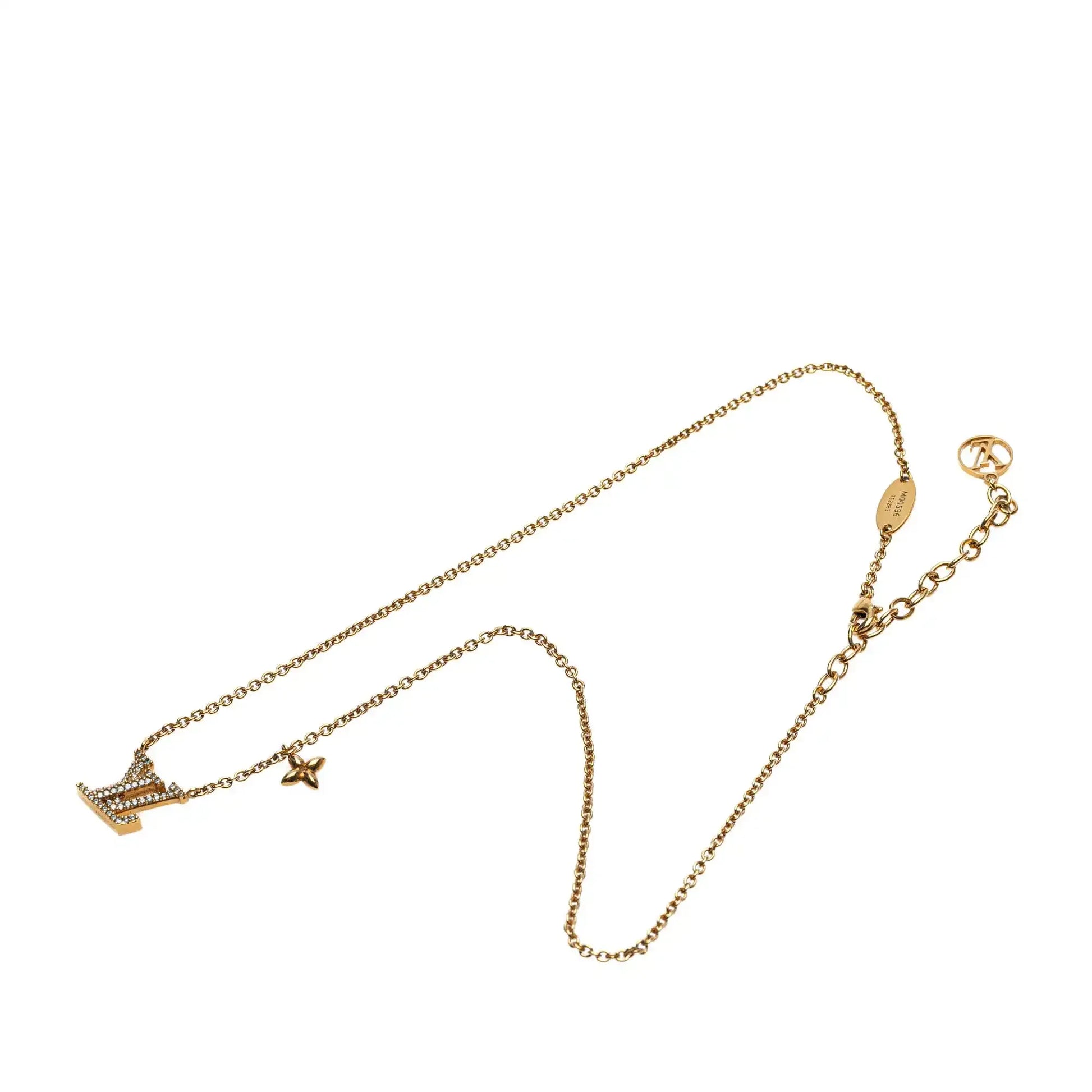 Louis Vuitton Gold Plated LV Crystal Iconic Pendant Necklace