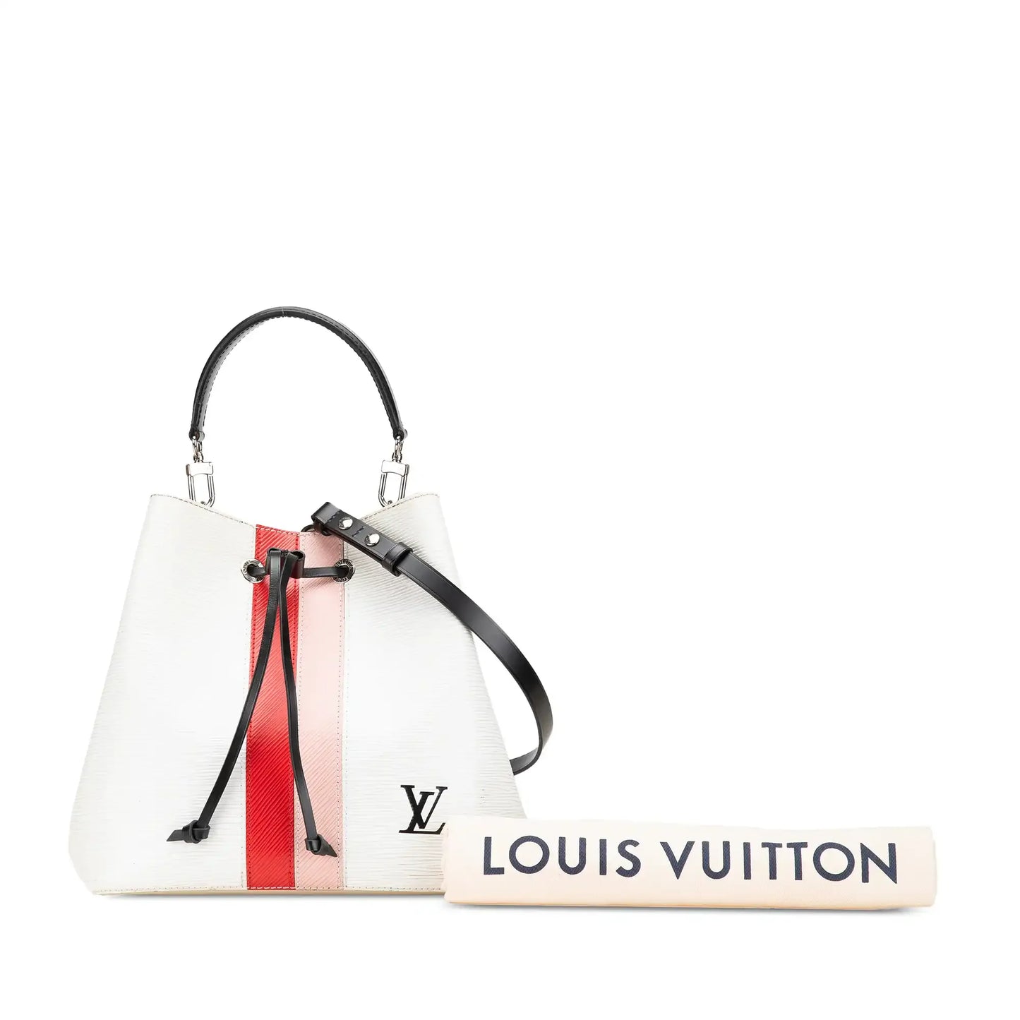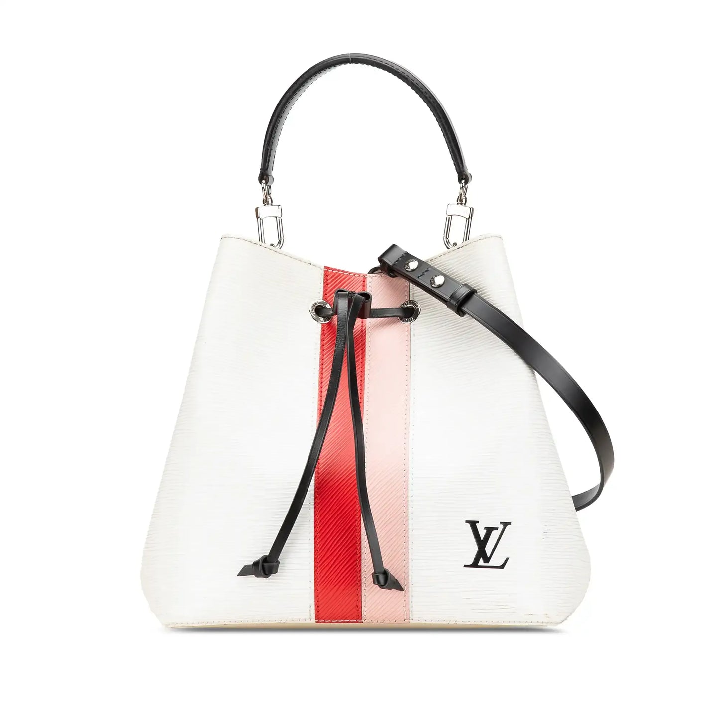 Description | The NeoNoe MM features an epi leather body with colored stripes, a flat leather handle, a detachable flat leather strap, a top drawstring closure, and an interior zip compartment. | ||||||||||||