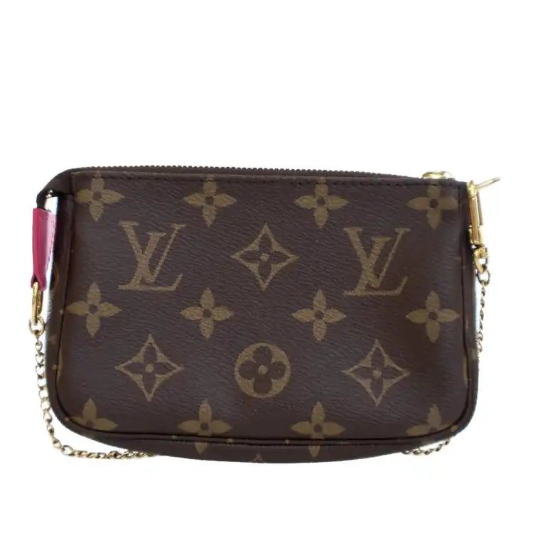 Description | The Mini Pochette Accessoires features a monogram canvas body, a gold-tone chain handle, and a top zip closure. | ||||||||||||