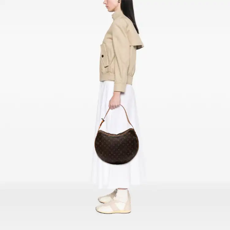 Description | The Croissant GM features a monogram canvas body with vachetta leather trim, an adjustable flat vachetta leather strap, a top zip closure, and interior slip pockets. | ||||||||||||