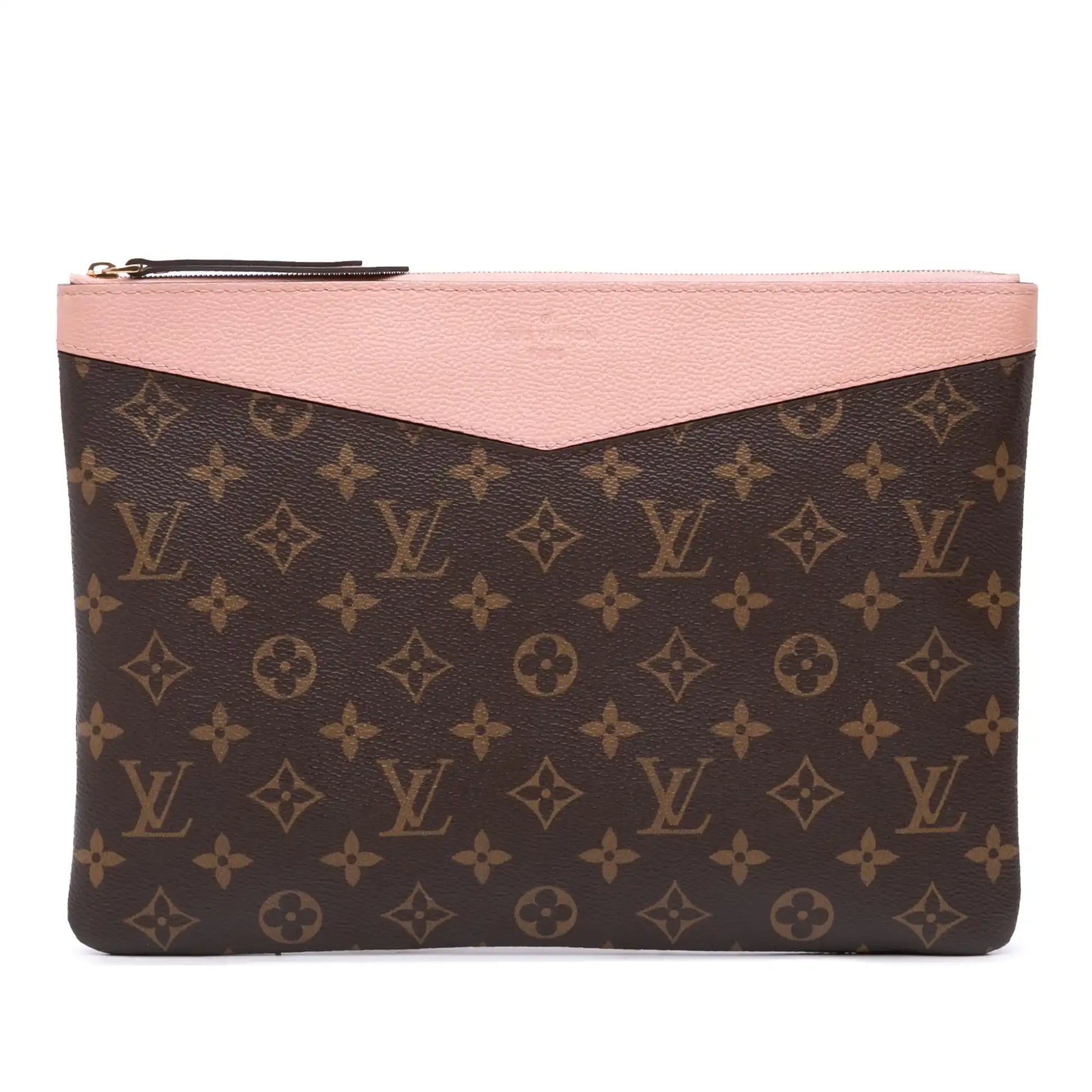 Description | The Daily Pouch features a monogram canvas body with leather trim, a top zip closure, and an interior slip pocket. | ||||||||||||