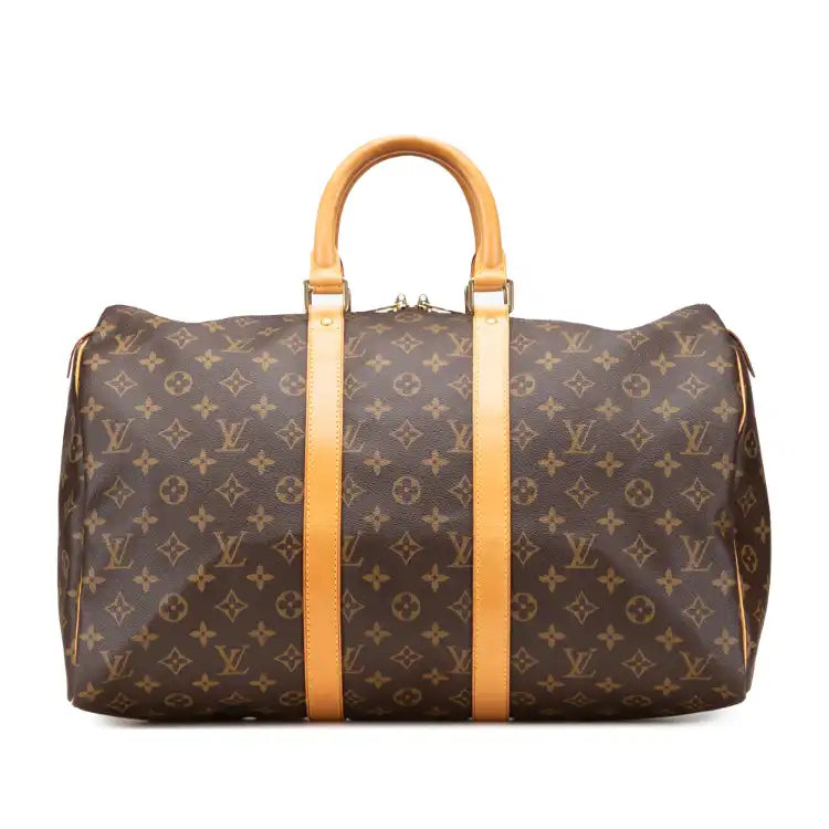 Description | The Keepall 45 features a monogram canvas body with vachetta leather trim, rolled vachetta leather handles, and a top zip closure. | ||||||||||||