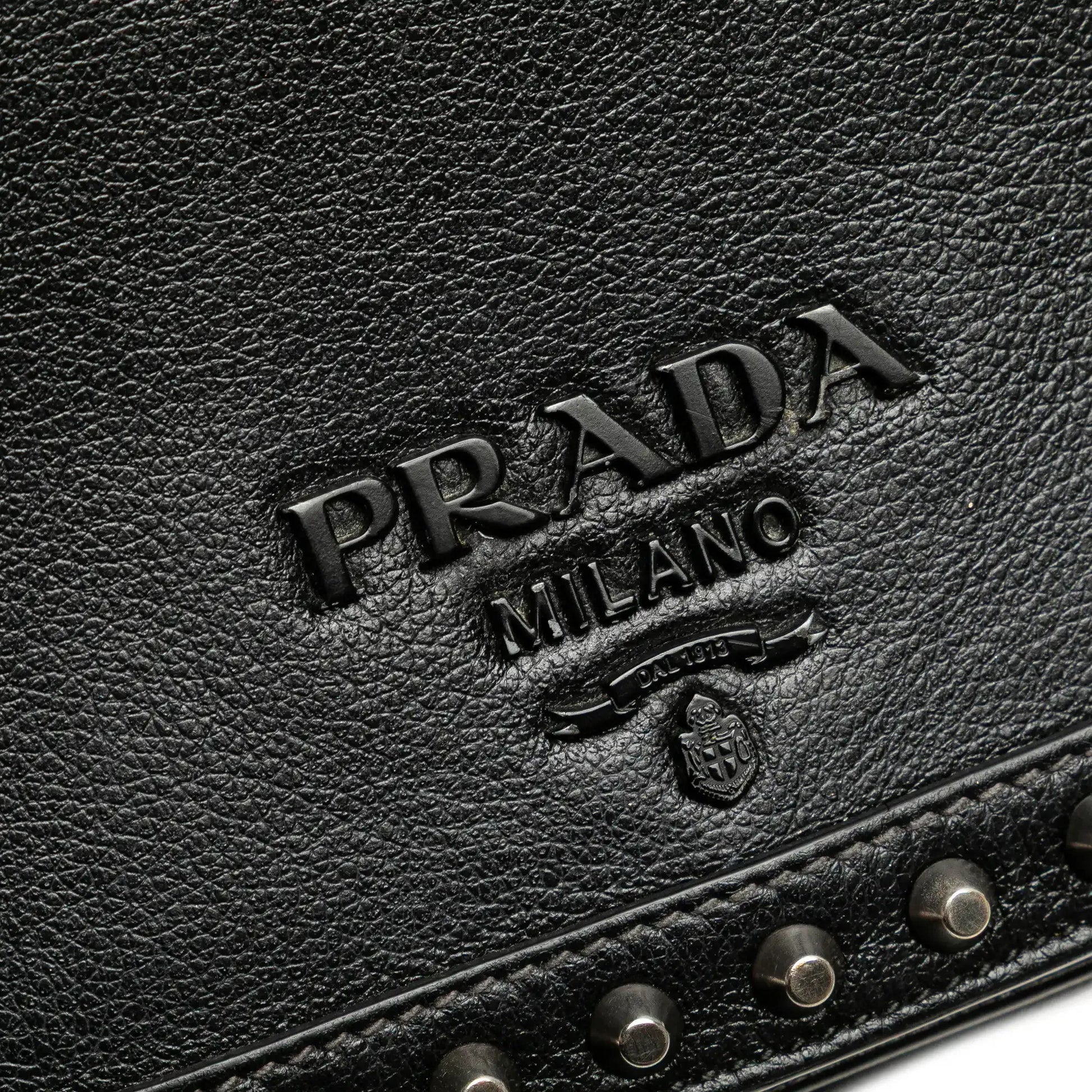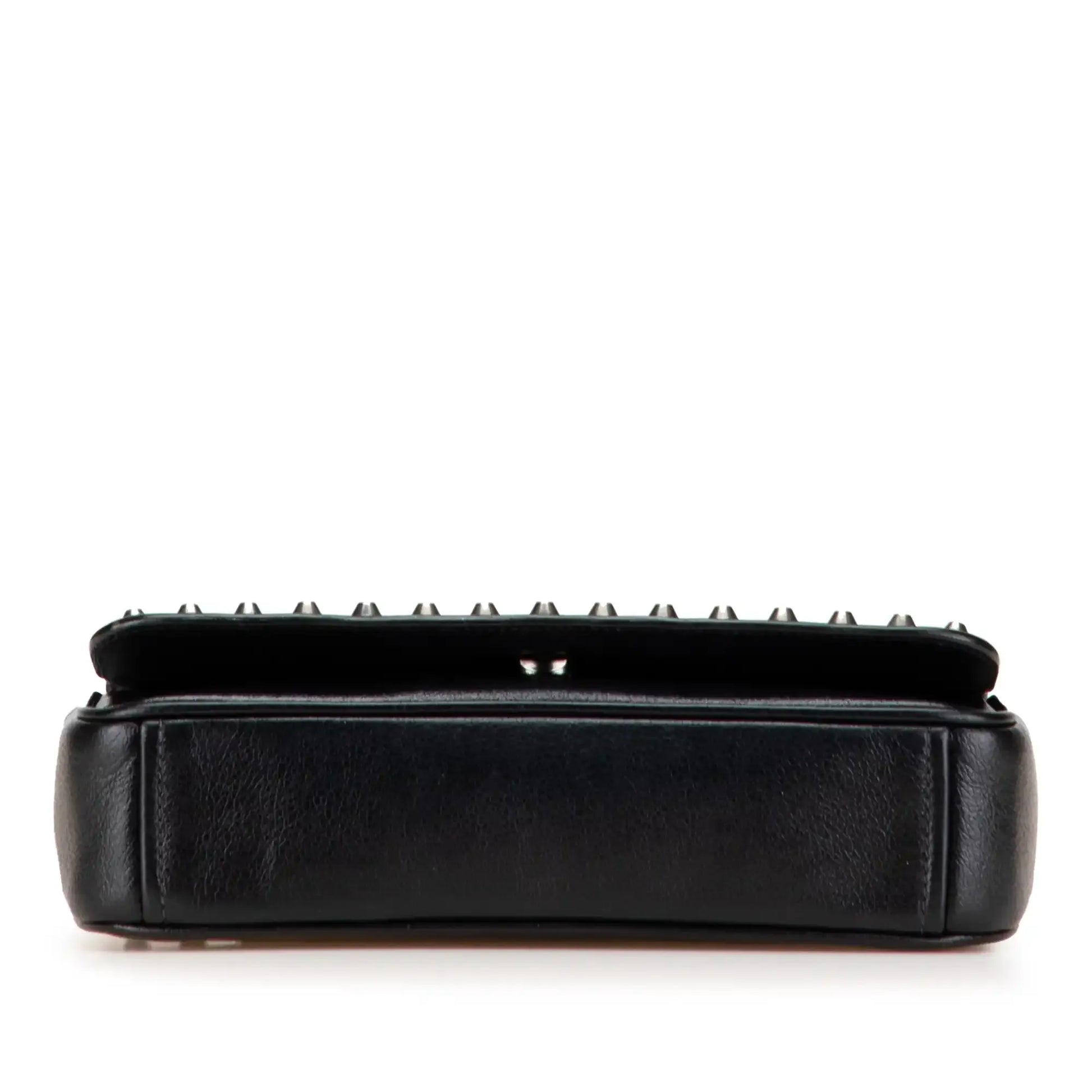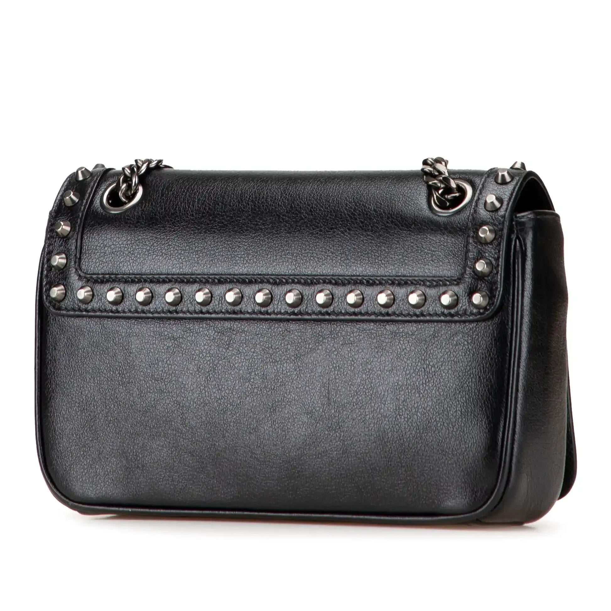 | Description | This crossbody bag features a studded leather body, a chain strap with leather shoulder guard, a front flap with magnetic snap button closure, and interior zip and slip pockets. | ||||||||||||