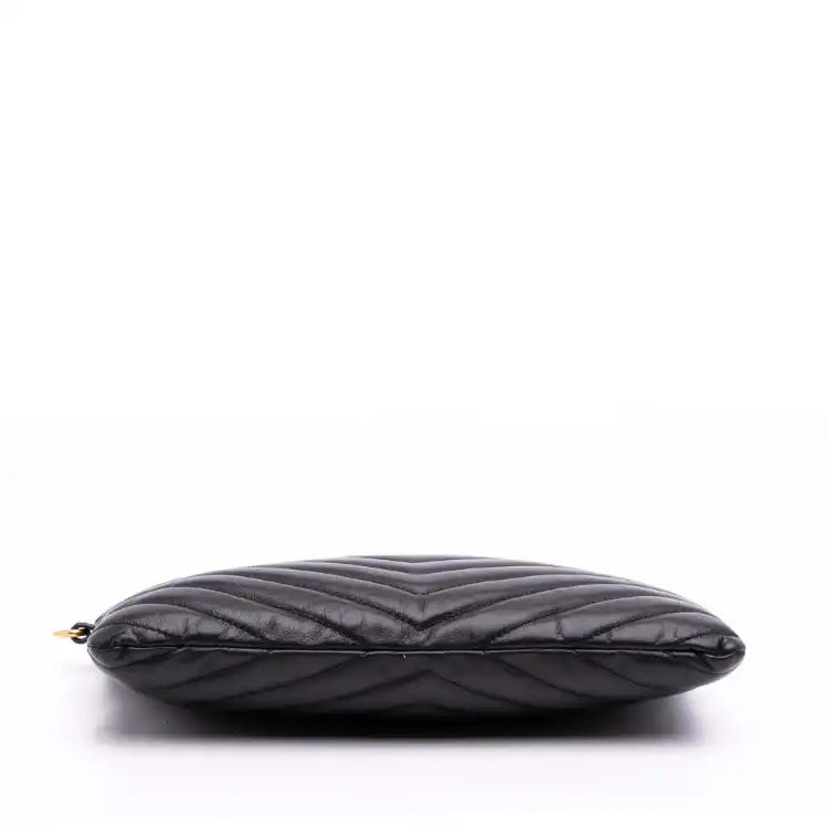 Saint Laurent Chevron Leather Monogram Zip A5 Wristlet Pouch