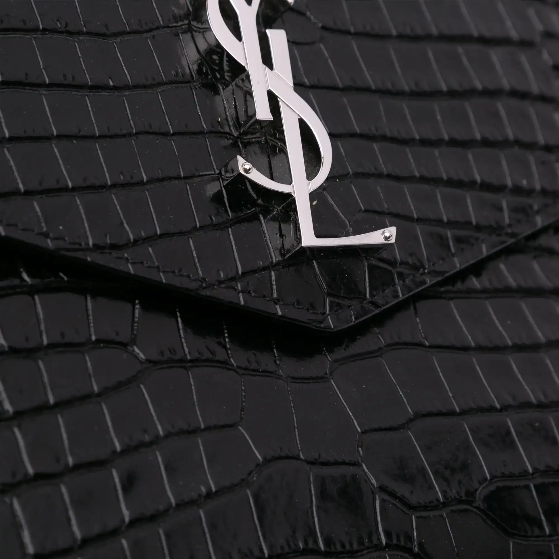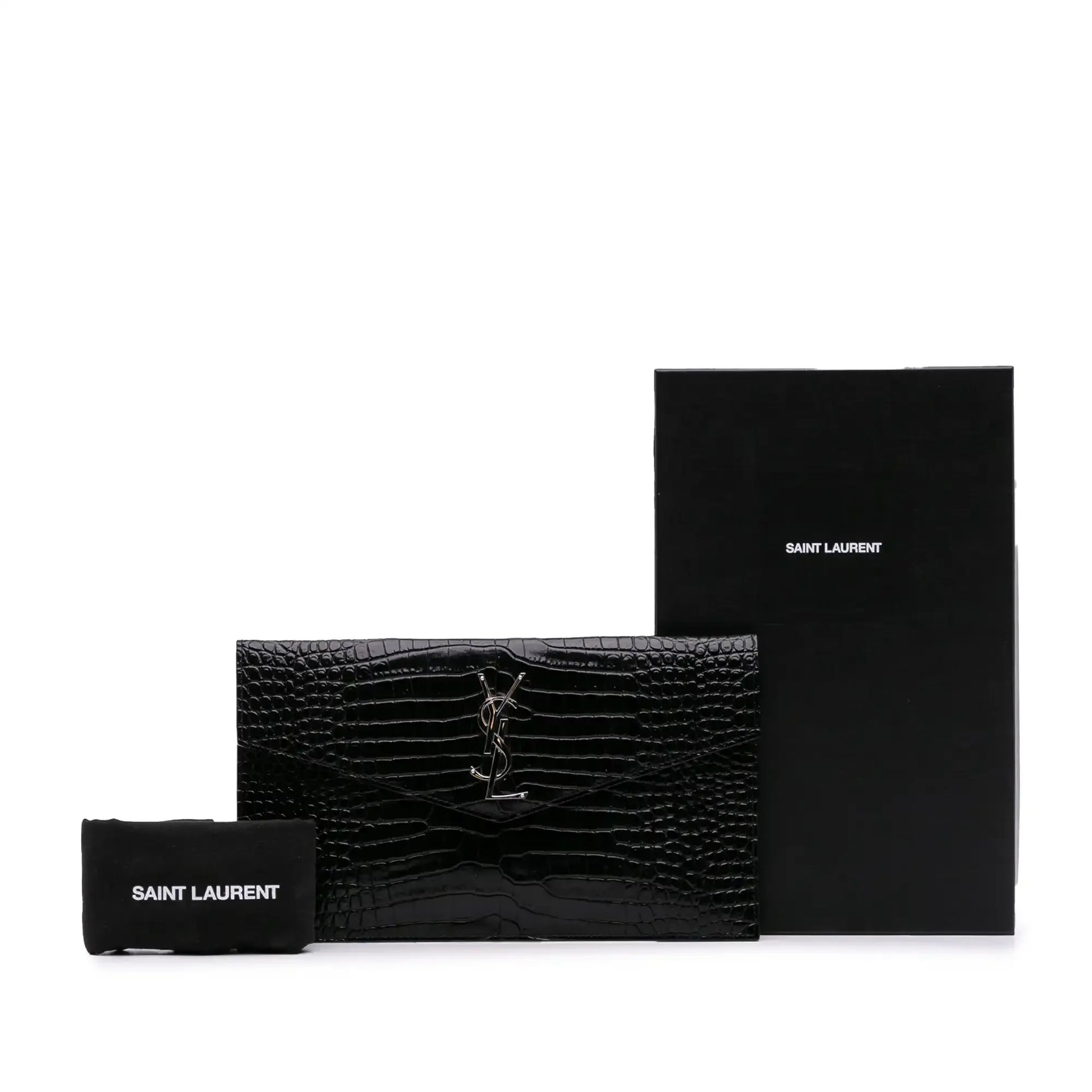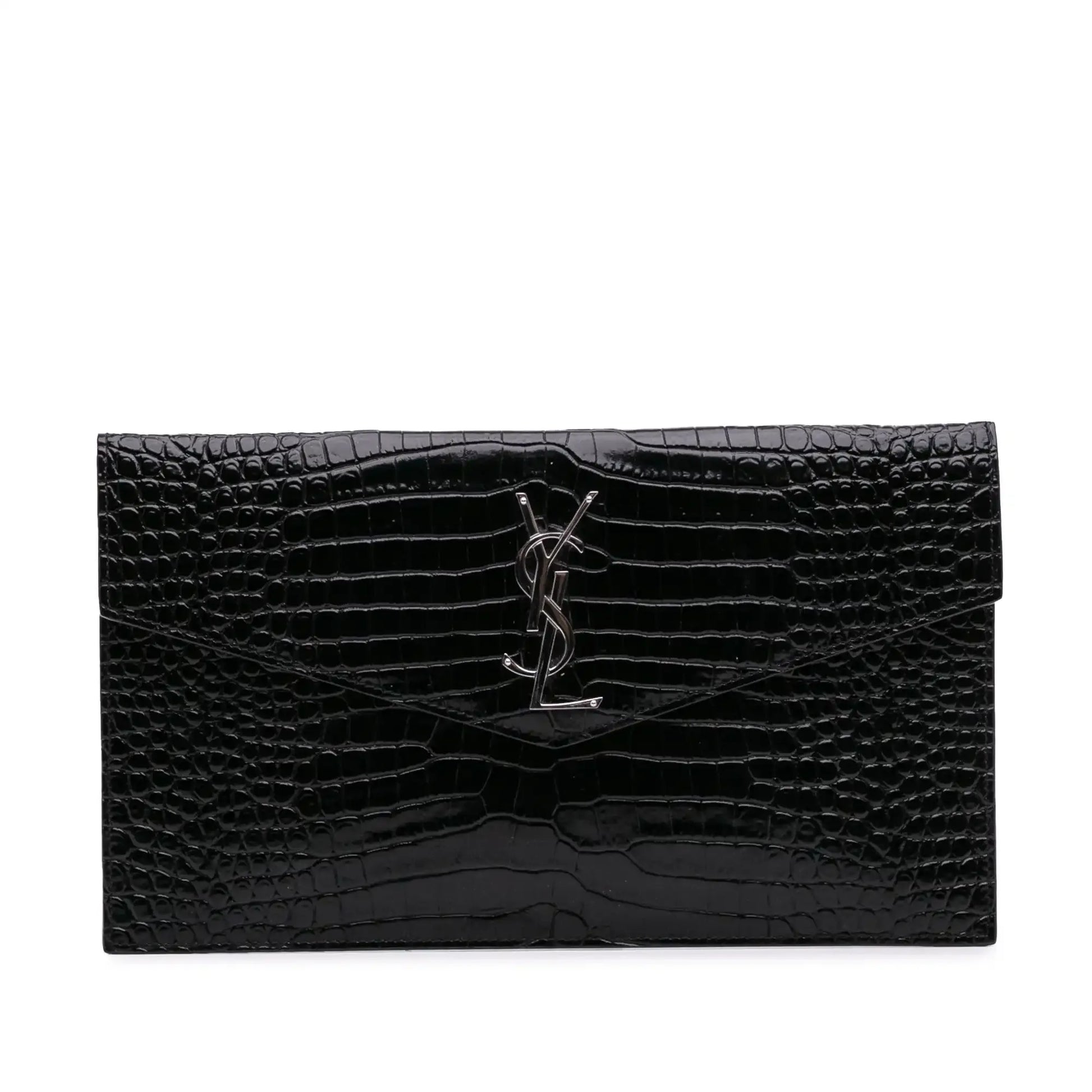 Saint Laurent Croc Embossed Patent Leather Uptown Pouch