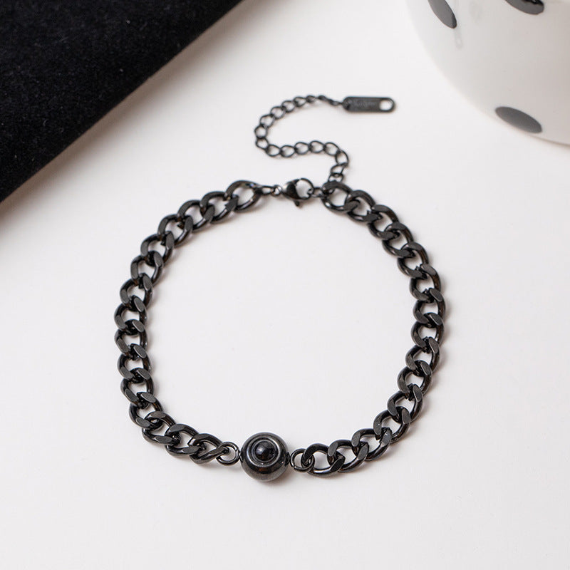 The perfect combination of fashion and memories: The simple and elegant Cuban chain paired with the round projection bracelet is not only a piece of jewelry, but also a perfect combination of fashion and memories. It encapsulates your precious memories and the design of the Cuban chain in a gemstone forever, making each wear a beautiful tribute to fashion and memories.