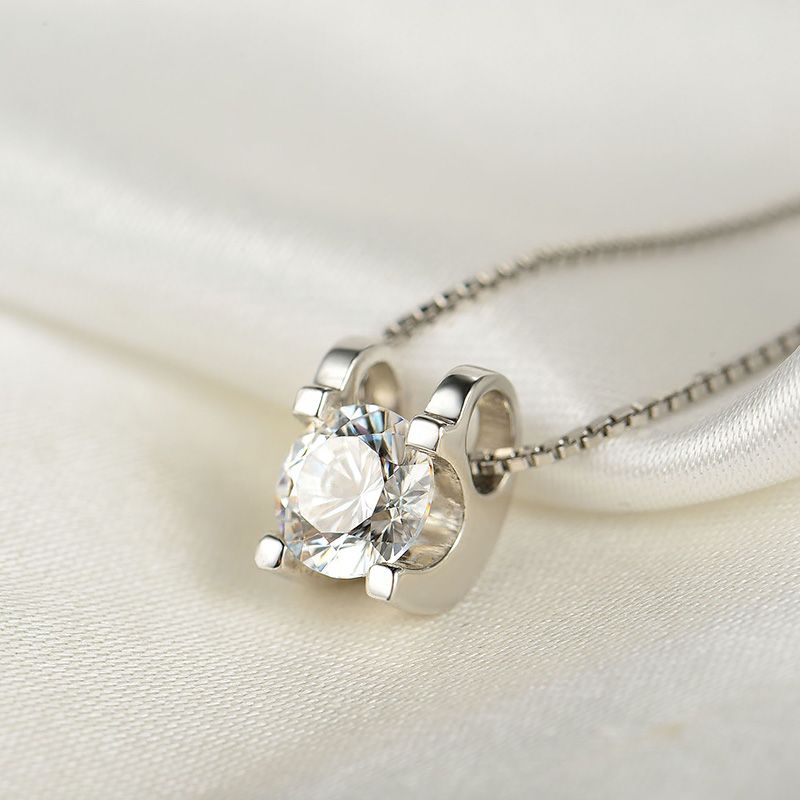 Simple Round Cut White CZ 925 Sterling Silver Pendant Women