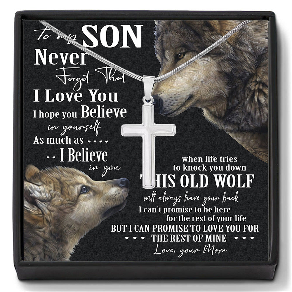 This sleek and simple cross gift box necklace is a special gift for your amazing son. It shows his son's personality and taste with a simple and stylish design.