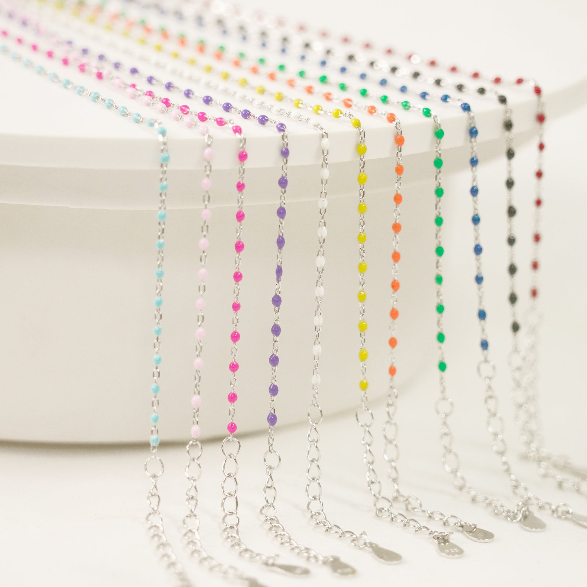 Summer Rainbow Colorful Epoxy Solid Enamel 925 Sterling Silver Necklace/Bracelet