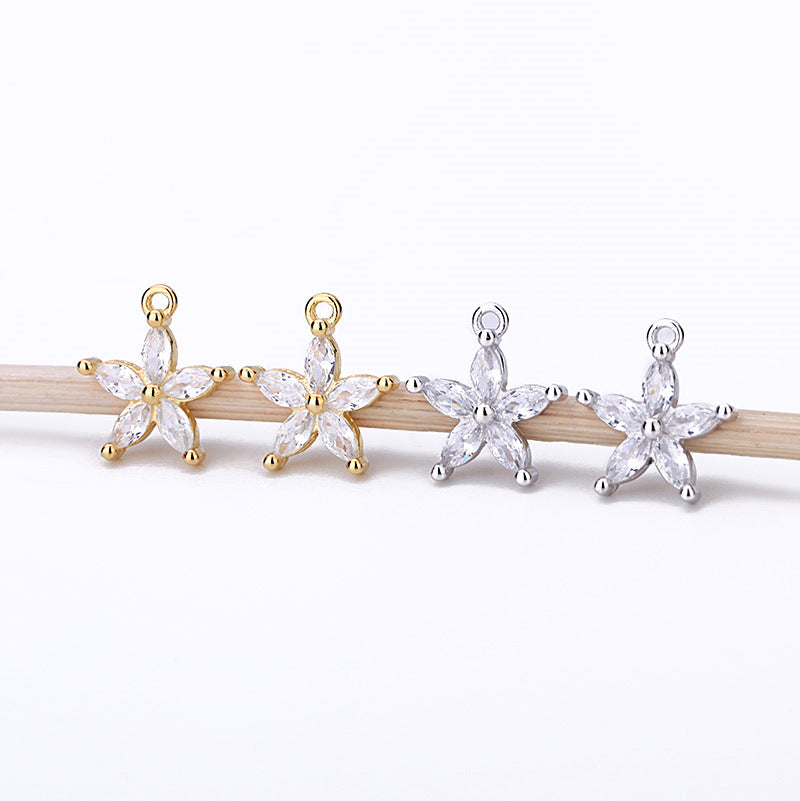 Sweet CZ Star Flower 925 Sterling Silver DIY Charm