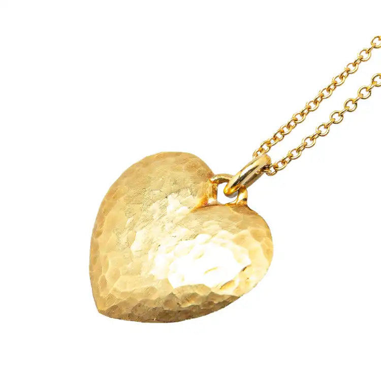 Tiffany Paloma Picasso 18K Yellow Gold Hammered Heart Pendant Necklace