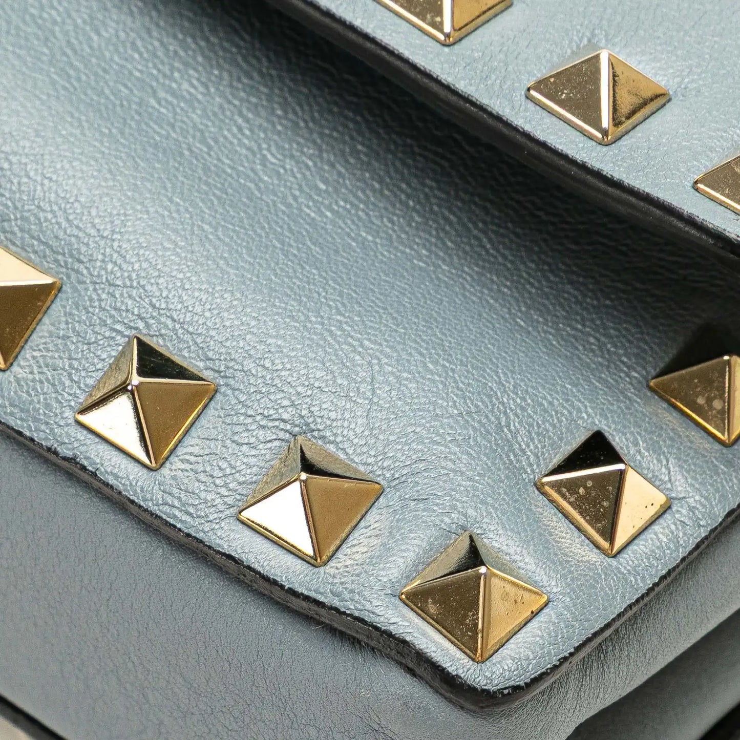 Description | This clutch bag features a leather body with stud details, a detachable chain strap with studded metal bracelet, a front flap with magnetic closure, and an interior slip pocket. | ||||||||||||