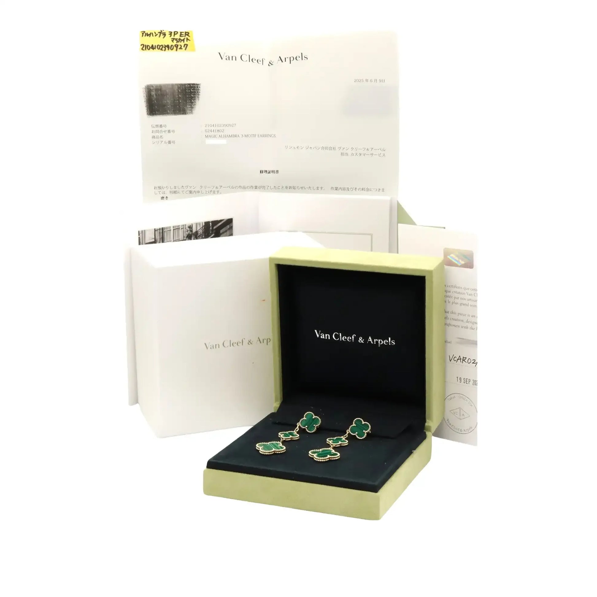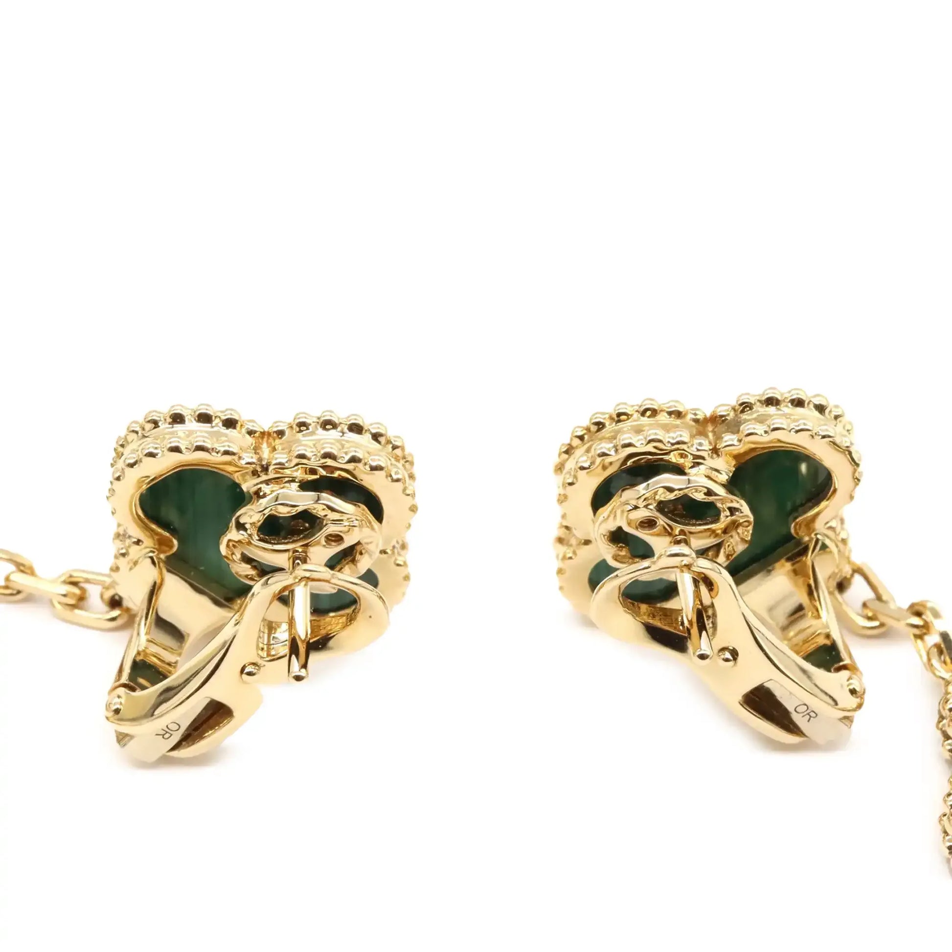 Van Cleef and Arpels 18K Yellow Gold and Malachite Magic Alhambra 3 Motif Earrings