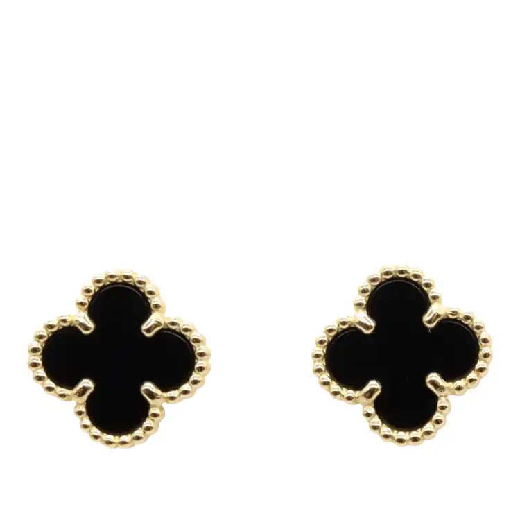van cleef and arpels 18K Yellow Gold and Onyx Sweet Alhambra Earrings