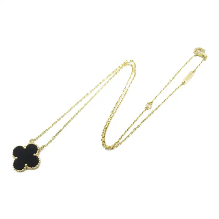 van cleef and arpels 18K Yellow Gold and Onyx Vintage Alhambra Pendant Necklace